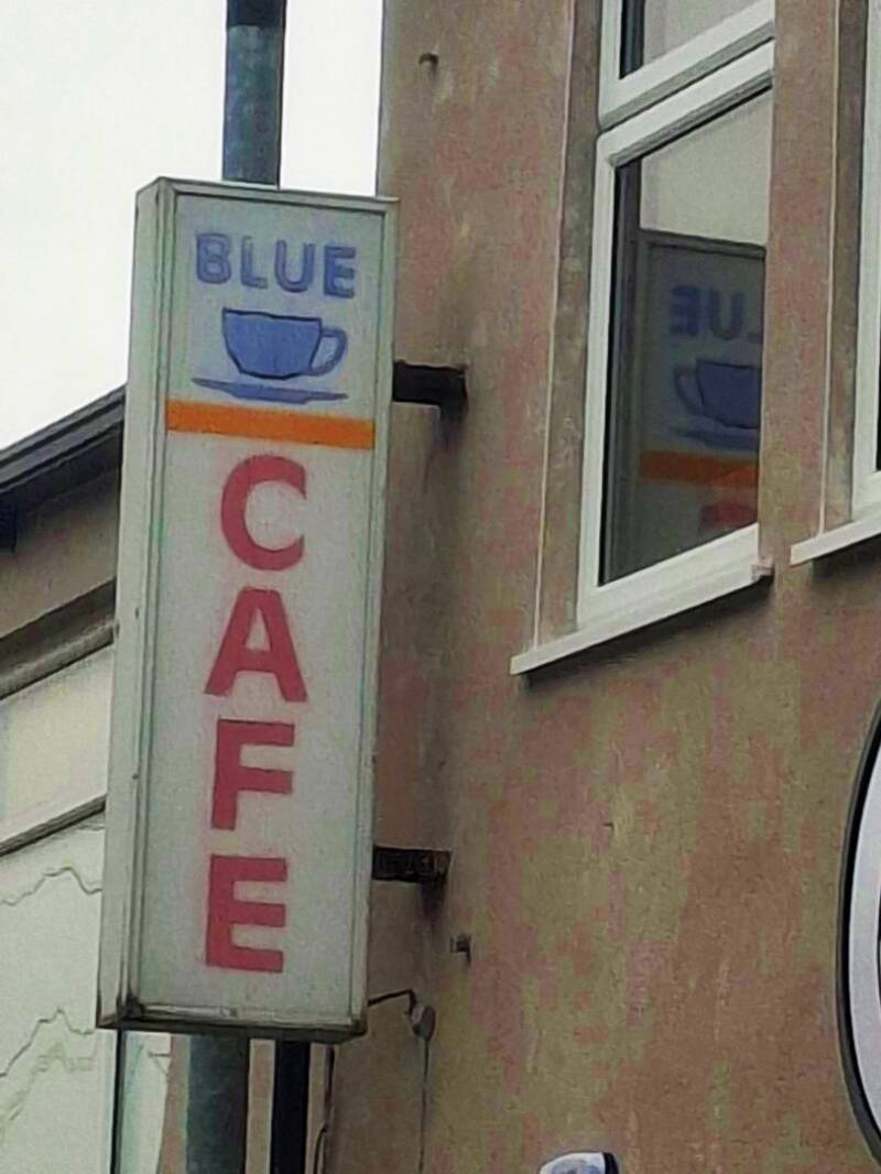 58 seconds into this episode, the Blue Cup Cafe's sign is shown. I love this cafe. I have been to this cafe a few times over the years. Despite my stammer, it never seems to be an issue for the always pleasant and courteous staff. Great food and delicious coffee. Highly recommended.
